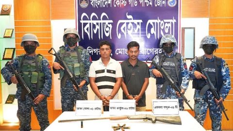 সুন্দরবনে কোস্ট গার্ডের অভিযানে অস্ত্র ও গোলাবারুদসহ করিম শরীফ বাহিনীর ২ সদস্য আটক