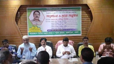 লালমোহনে সাংবাদিক রুহুল আমীন গাজীর মৃত্যুতে দোয়া মোনাজাত