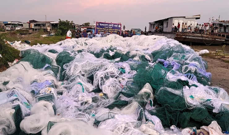 দোহারে কোস্ট গার্ডের অভিযানে ৪১৩ কোটি টাকার অবৈধ জাল জব্দ