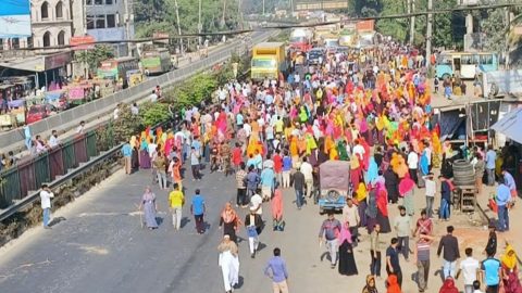 আশুলিয়ায় মহাসড়ক অবরোধ করে শ্রমিকদের বিক্ষোভ
