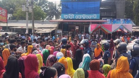বেতন বৃদ্ধির দাবিতে শ্রীপুরে মহাসড়ক দখলে নিয়ে শ্রমিকদের বিক্ষোভ