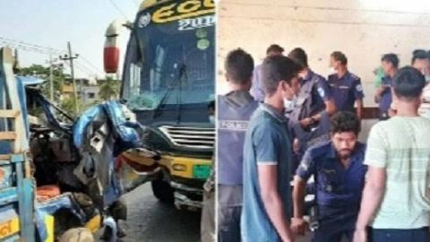 পুলিশ বহনকারী দুই পিকআপের সঙ্গে বাসের সংঘর্ষ, আহত ২০