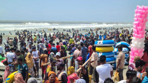 ছুটির দিনে সমুদ্রসৈকত কক্সবাজার যেন পর্যটকদের মিলনমেলা