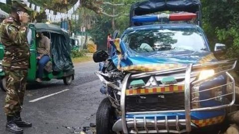 পুলিশ ও সেনাবাহিনীর গাড়ি মুখোমুখি সংঘর্ষ