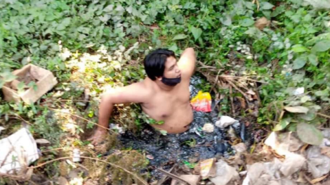 পাকিস্তানের জার্সি গায়ে স্টেডিয়ামে আসায় ডোবায় নামিয়ে শাস্তি