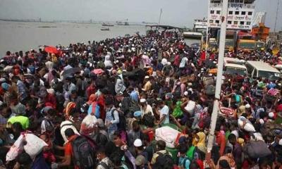 ফেরি চলাচল বন্ধ তবুও ঘাটে মানুষের ঢল
