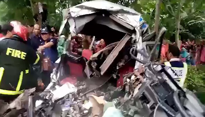 ওই সময় কাভার্ডভ্যানটি নিয়ন্ত্রণ হারিয়ে বিপরীতগামী অ্যাম্বুলেন্সের সঙ্গে মুখোমুখি সংঘর্ষ হয়। এতে অ্যাম্বুলেন্সে থাকা সকল যাত্রী নিহত হয়। পরবর্তীতে পুলিশ ও দমকল ইউনিট অ্যাম্বুলেন্সের মধ্যে আটকে পড়া মরদেহ বের করে। তবে এখনো নিহতদের পরিচয় জানা যায়নি।