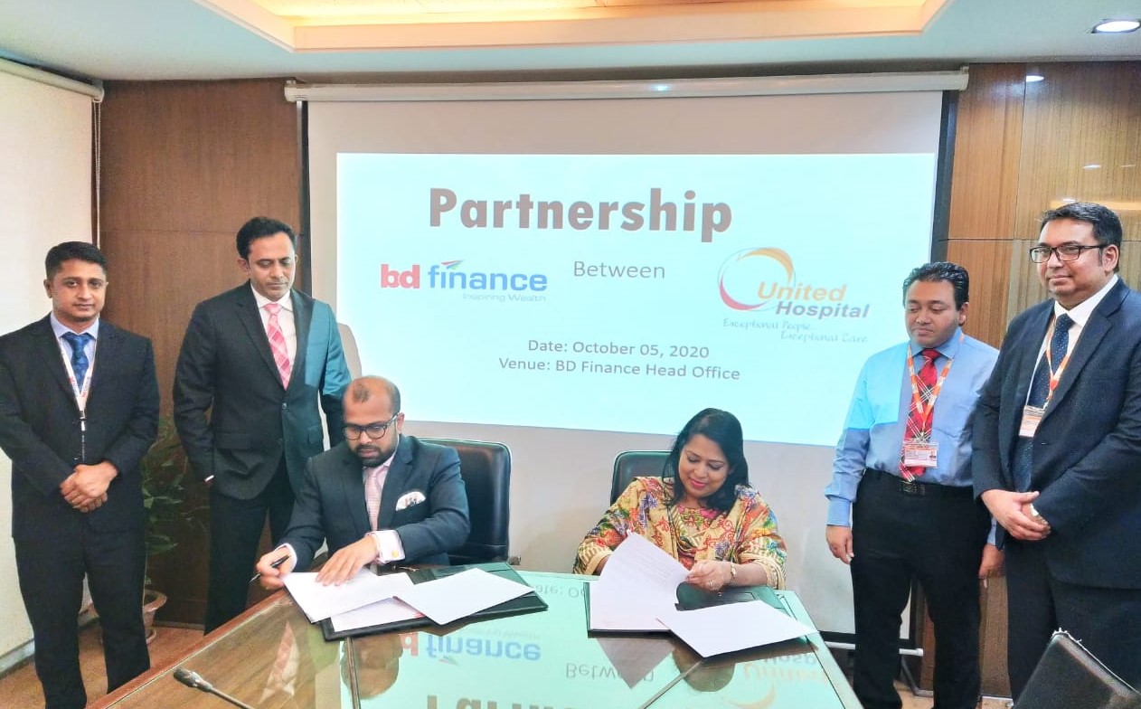 দেশের শীর্ষস্থানীয় আর্থিক প্রতিষ্ঠান বাংলাদেশ ফাইন্যান্স এন্ড ইনভেস্টমেন্ট কোম্পানী লিঃ (বিডি ফাইন্যান্স) ও ইউনাইটেড হাসপাতালের মধ্যে গতকাল ০৫ অক্টোবর, ২০২০ তারিখে এক মেডিক্যাল সার্ভিস সংক্রান্ত এমওইউ (মেমোরেন্ডাম অব আন্ডার্সটেন্ডিং) চুক্তি স্বাক্ষর অনুষ্ঠিত হয় বিডি ফাইন্যান্স-এর প্রধান কার্যালয়ে।