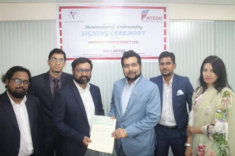 নতুন উদ্যোক্তা ও দেশের অর্থনৈতিক উন্নয়নের অংশীদার বিভিন্ন শীর্ষস্থানীয় ব্যবসায়িক প্রতিষ্ঠানের ব্যবসায়িক সমৃদ্ধির লক্ষ্যে, প্রাতিষ্ঠানিক সেবা দান, বিনিয়োগ, উদ্যোক্তা মূলধন এবং প্রাইভেট ইক্যুইটি তহবিল সংগ্রহ, সম্পদ ব্যবস্থাপনা ও প্রক্রিয়াকরণ, ঢাকা স্টক এক্সচেঞ্জ এ তালিকাভুক্তি সম্পর্কিত পরামর্শ, স্টার্টআপস, এসএমই এবং আর্থিক বিশ্লেষণ, মূল্যায়ন, সম্ভাব্যতা অধ্যয়ন ও কৌশলগত পরিচালনার সিদ্ধান্তের মাধ্যমে দৃঢ় অর্থনৈতিক উন্নয়নে একসাথে কাজ করার লক্ষ্যে অন্যতম শীর্ষস্থানীয় পরামর্শদাতা কোম্পানি ফিনটেজিক কনসালটেন্সি লিমিটেড ও অন্যতম শীর্ষস্থানীয় প্রতিষ্ঠান এসভিপি লিমিটেড আজ বৃহস্পতিবার (১২ই নভেম্বর ২০২০ইং) ফিনটেজিক কনসালটেন্সি লিমিটেডের প্রধান কার্যালয় এ এক চুক্তি সম্পাদন করে।