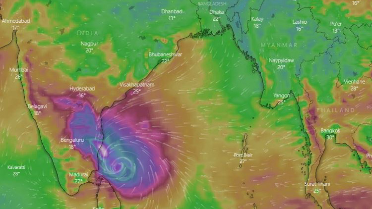 উইন্ডি ডটকমের আবহাওয়া চিত্রে দেখা যায়, ঘূর্ণিঝড় ‘নিভার’র প্রভাব পড়তে শুরু করেছে তামিলনাড়ু উপকূলে। সেখানে বৃষ্টিপাত শুরু হয়েছে। বাতাসের গতিবেগ বাড়ার সঙ্গে সঙ্গে সৈকতে বড় বড় ঢেউ আছড়ে পড়ছে।