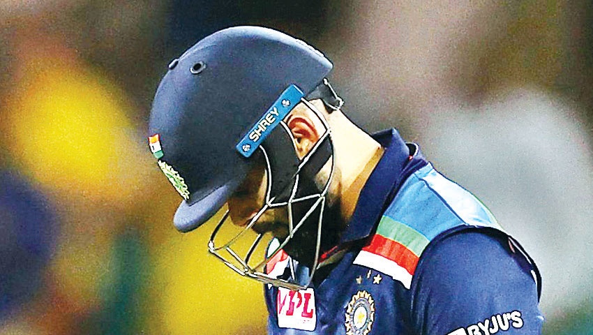 জবাব দিতে নেমে ভারতের দুই ওপেনার উইকেটে থিতু হয়েও ইনিংস বড় করতে ব্যর্থ হন। আগারওয়াল ২৮ ও ধাওয়ান ৩০ রান করে আউট হন। এরপর হাল ধরেন কোহলি এবং আয়ার। দুজনে মিলে ৯৩ রানের জুটি গড়েন। আয়ার ৩৮ রান করে আউট হলে ভাঙে এই জুটি। এরপর রাহুলের সঙ্গে জুটি বাধেন কোহলি। এই জুটিতে আসে ৭২ রান। কিন্তু সেঞ্চুরির আশা জাগানো কোহলি ৮৯ রান করে আউট হলে ভাঙে এই জুটি। কোহলির বিদায়ের পর রাহুল ব্যতিত আর কেউ বড় ইনিংস খেলতে পারেনি। হার্ডিক ২৮, জাদেজা ২৪, সাইনি ১০ রান করেন। আর রাহুল করেন ৭৬ রান।
