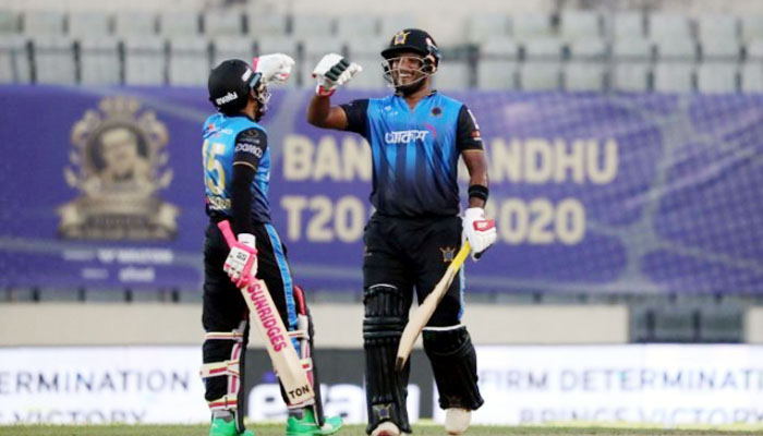 ব্যাটিংয়ে নেমে ঢাকা প্রথমেই হারায় ওপেনার নাঈম হাসানকে। আরেক ওপেনার নাঈম শেখও টিকতে পারেনি। ১৯ বলে ৯ রান করে অষ্টম ওভারে বিদায় নেন। চার নম্বরে নেমে ৪ বলে ২ রান করে বিদায় নেন তানজিদ হাসান। ২৯ বলে ৩৭ রান করে উইকেটরক্ষকের হাতে ক্যাচ দিয়ে বিদায় নেন মুশফিকুর রহিম।