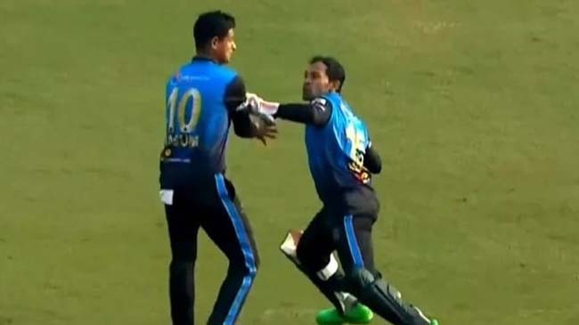 এলিমিনেটর ম্যাচে সোমবার বরিশালকে হারিয়ে ফাইনালের পথে এগিয়ে গেছে বেক্সিমকো ঢাকা। বরিশাল যখন ব্যাট করছিল সেই ইনিংসের ১৩ ও ১৭ ওভারে মুশফিক চড়াও হয়েছিলেন সতীর্থ নাসুমের সঙ্গে। ১৩ ওভারে বল করতে আসা নাসুম আফিফের হাতে খান এক ছক্কা। পরের বলে মিড উইকেটে ঠেলে সিঙ্গেল নিতে গেলে রান আটকাতে দৌড় দেন বোলার নাসুম ও কিপার মুশফিক দুজনেই। একসঙ্গে দুজন জড়ো হওয়ায় ব্যাটসম্যানদের রান আউটের সুযোগ তৈরি করা যায়নি। মুশফিক তখন বল ধরে নাসুমের দিকেই থ্রো করতে উদ্যত হন।