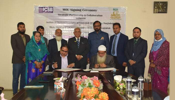 ইনস্টিটিউট অব চার্টার্ড সেক্রেটারি অব বাংলাদেশের (আইসিএসবি) সাথে ঢাকা চেম্বার অফ কমার্স অ্যান্ড ইন্ডাস্ট্রির (ডিসিসিআই) সমঝোতা স্মারক স্বাক্ষর হয়েছে। আইসিএসবি’র এক প্রেস বিজ্ঞপ্তি হতে এ তথ্য জানা গেছে।