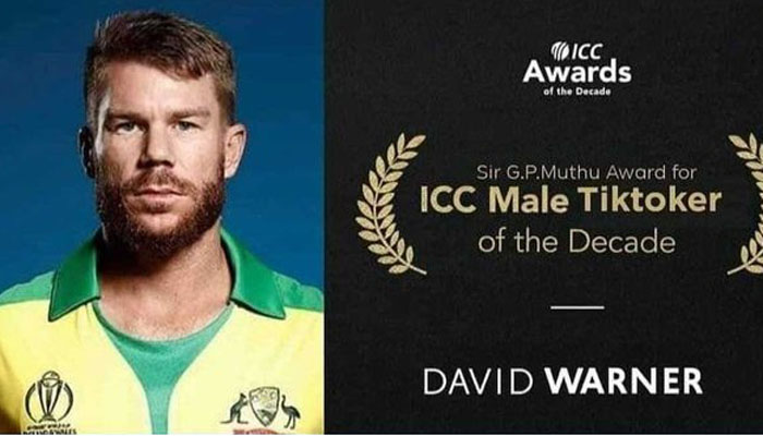 একমাত্র দশকের সেরা টি-টোয়েন্টি দলে জায়গা পেয়েছেন ডেভিড ওয়ার্নার। আইসিসির পুরস্কারকে নকল করে ওয়ার্নার ইনস্টাগ্রামে পোস্ট করেছেন দশকসেরা টিকটকার পুরষ্কার।