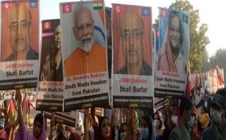 পাকিস্তানের সিন্ধ প্রদেশের স্বাধীনতার দাবিতে মিছিলে দেখা গেল ভারতের প্রধানমন্ত্রী নরেন্দ্র মোদি ও বাংলাদেশে প্রধানমন্ত্রী শেখ হাসিনা থেকে শুরু করে পৃথিবীর বিভিন্ন দেশের রাষ্ট্রনায়কদের ছবি সম্বলিত প্ল্যাকার্ড। পাকিস্তানের স্বাধীনতার জন্য নরেন্দ্র মোদি ও শেখ হাসিনাসহ পৃথিবীর বিভিন্ন দেশের শাসকদের হস্তক্ষেপের দাবি উঠল এই মিছিল থেকে।