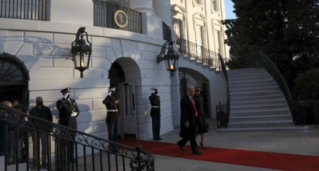 যুক্তরাষ্ট্রের প্রেসিডেন্ট হিসেবে মেয়াদ শেষে হোয়াইট হাউস ছেড়েছেন ডোনাল্ড ট্রাম্প। ফার্স্টলেডি মেলানিয়াসহ তিনি এখান থেকে বুধবার স্থানীয় সময় ভোর সোয়া পাঁচাটার দিকে বিশেষ হেলিকপ্টারে করে মেরিল্যান্ডের জয়েন্ট বেজ অ্যান্ড্রেজের উদ্দেশে রওনা দেন। সেখানেই তার মূল বিদায় অনুষ্ঠান।