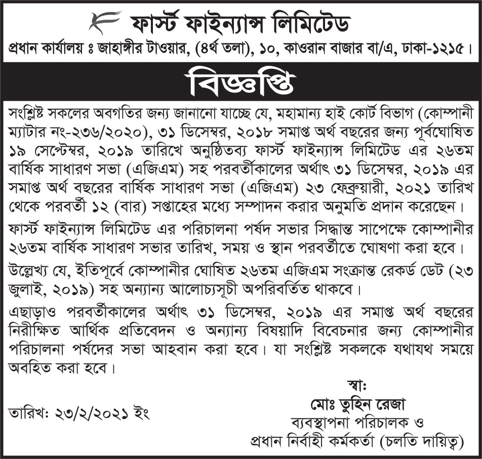 Notice of First Finance Limited