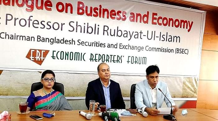 রাজধানীর পুরানা পল্টন ইকোনমিক রিপোর্টার্স ফোরাম (ইআরএফ) মিলনায়তনে শনিবার (১৩ মার্চ) দুপুরে ‘ডায়ালগ অন বিজনেস অ্যান্ড ইকোনমি’ শীর্ষক আলোচনা সভায় তিনি এসব কথা বলেন।