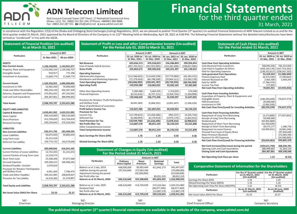 Q3 Financial Statements of ADN Telecom Limited