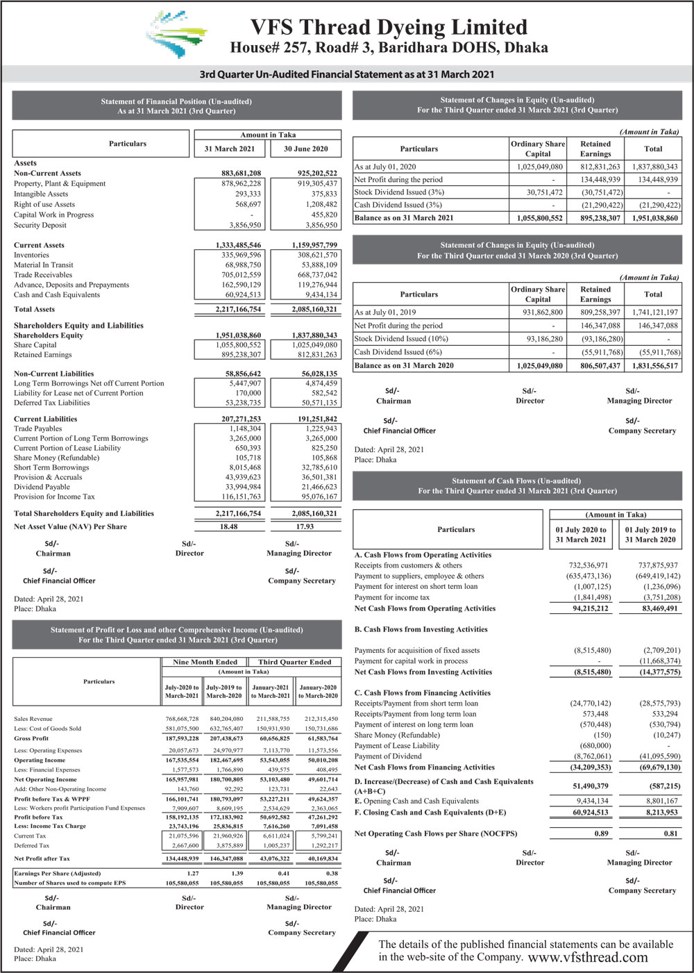 Q3 Financial Statements of VFS Thread Dyeing Limited