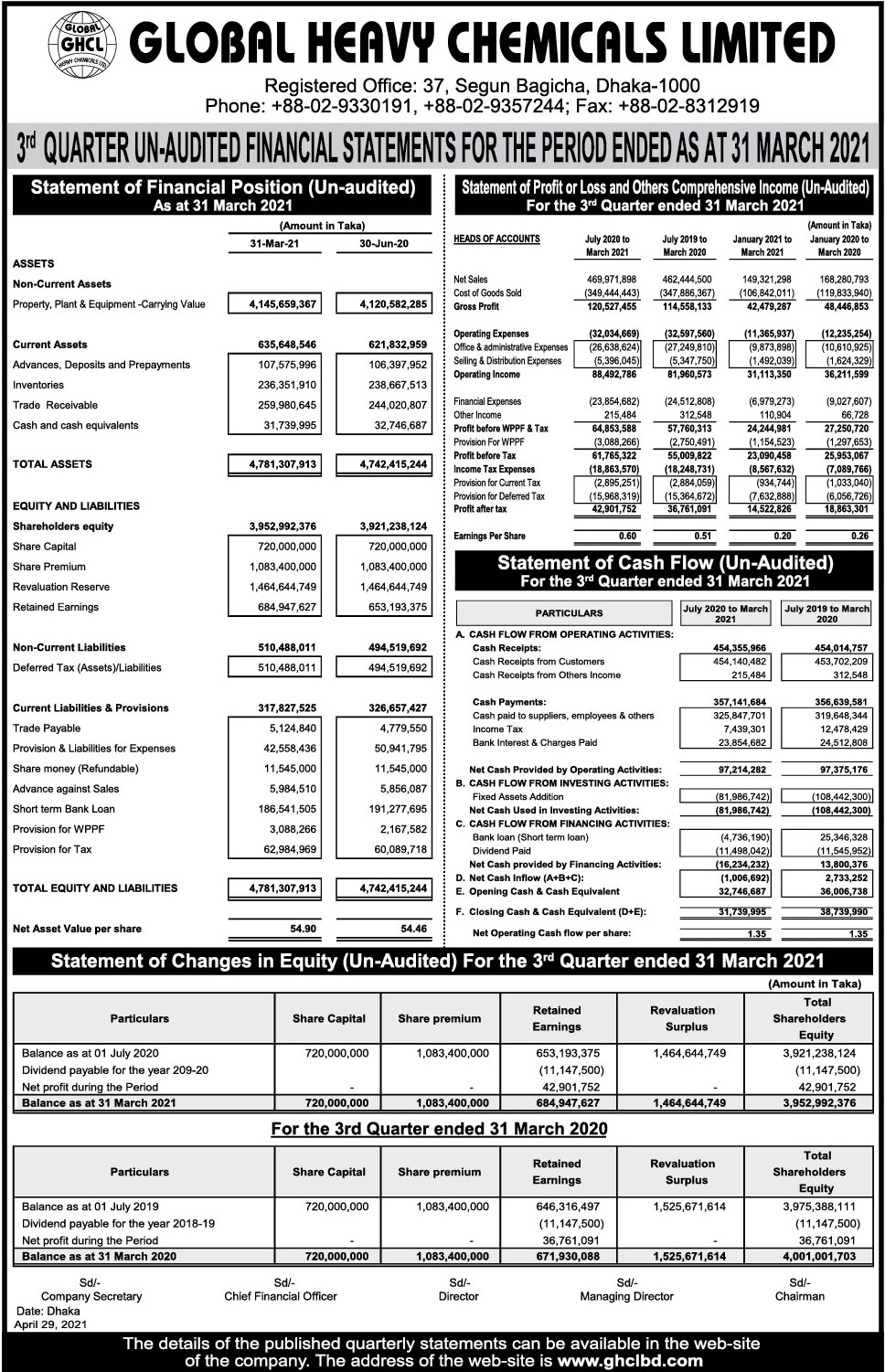 Q3 Financial Statements of Global Heavy Chemicals Limited