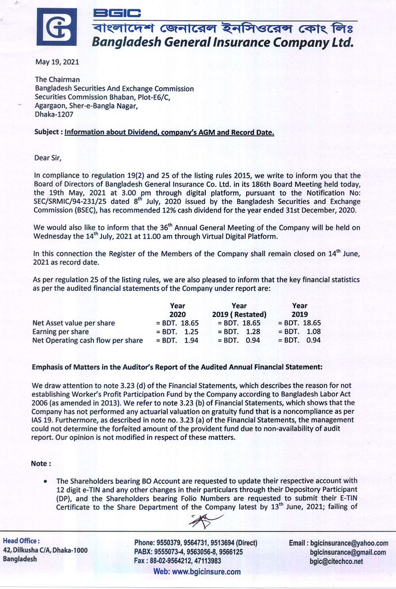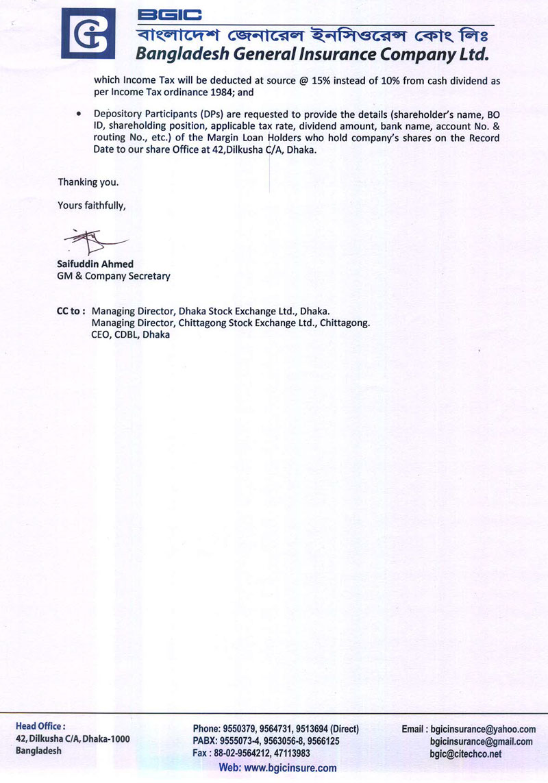 Price Sensitive Information of Bangladesh General Insurance Company Ltd