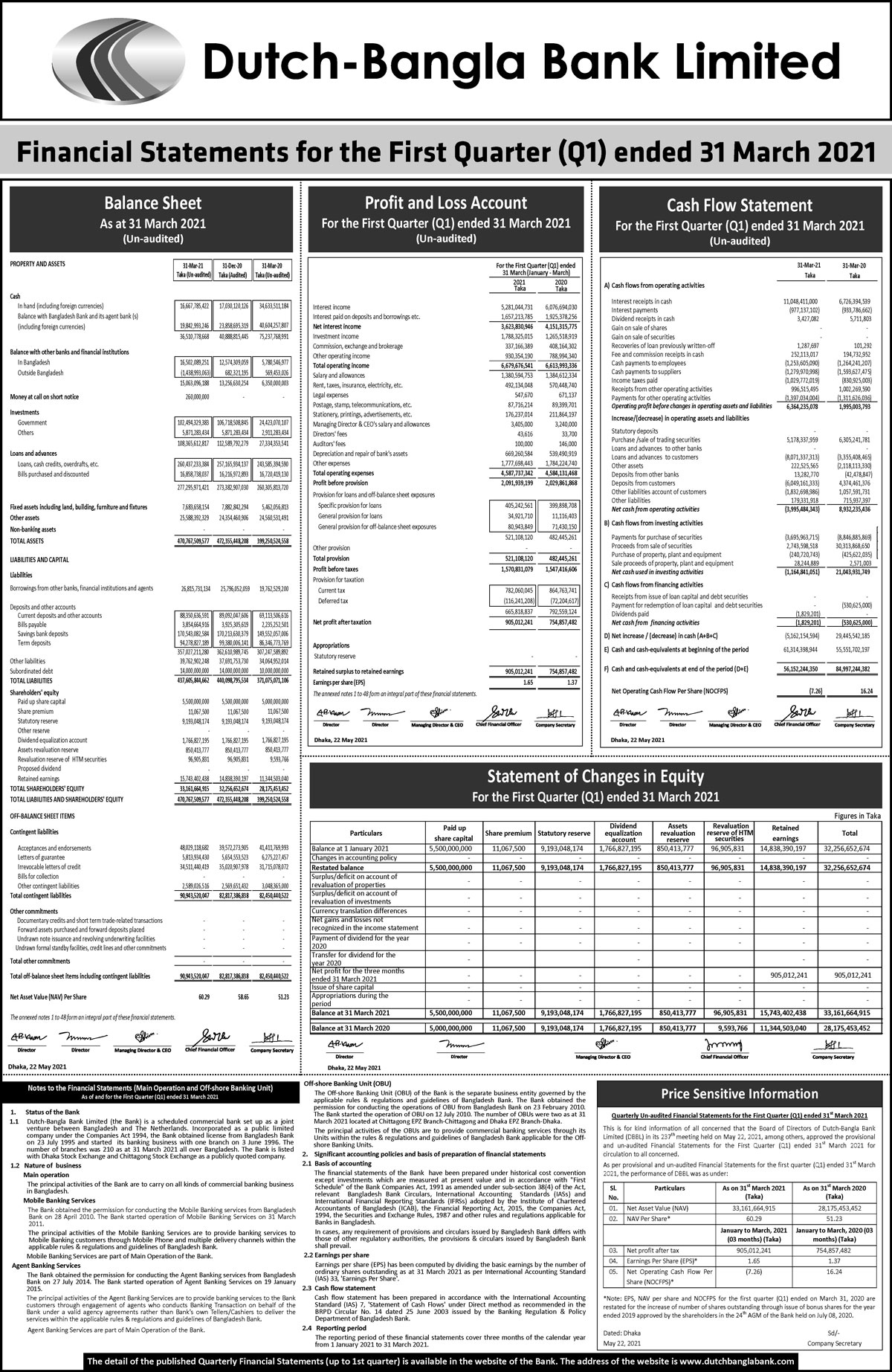 Q1 Financial Statements of Dutch-Bangla Bank Limited