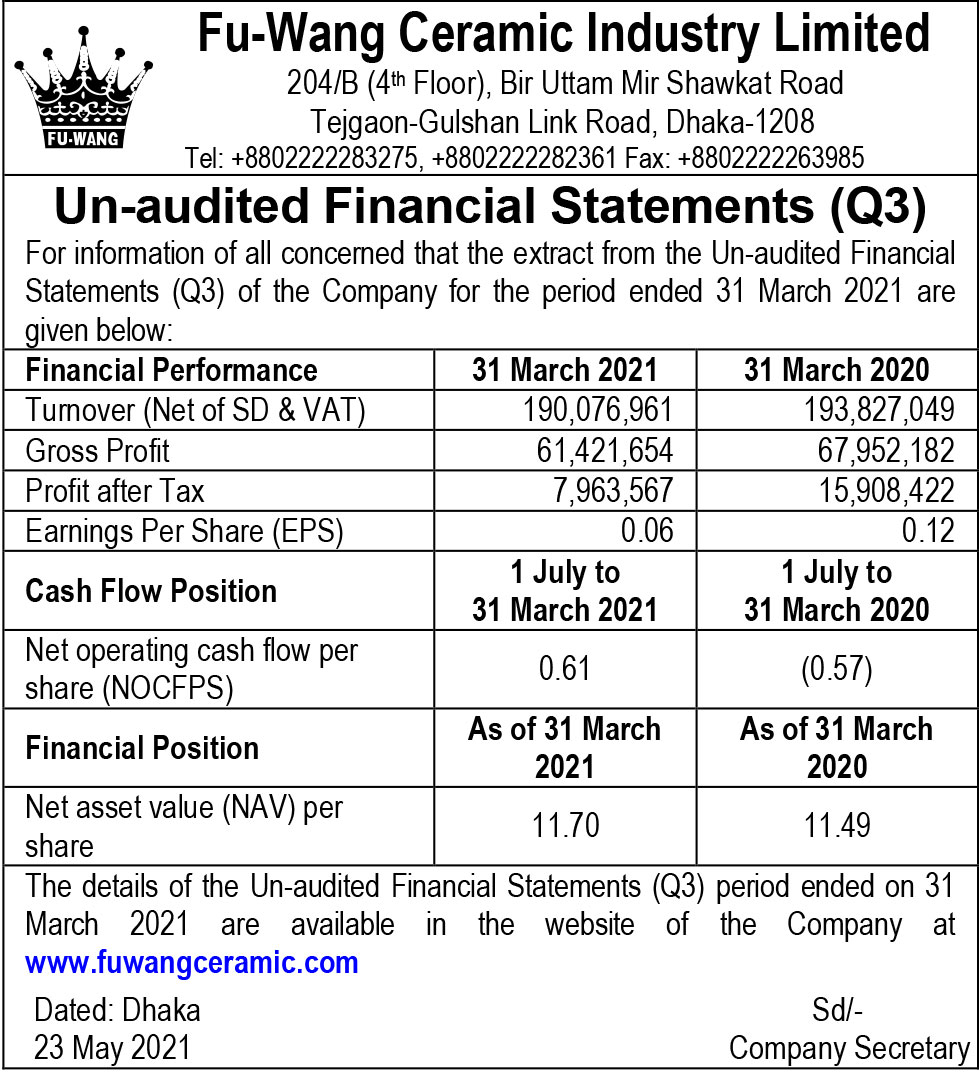 Q3 Un-audited Financial Statements of Fu-Wang Ceramic Industry Limited
