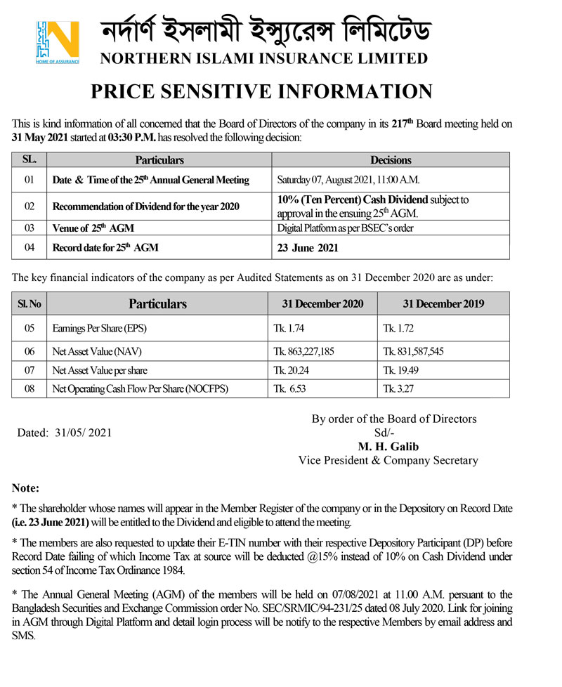 Price Sensitive Information of Northern Islami Insurance Ltd.