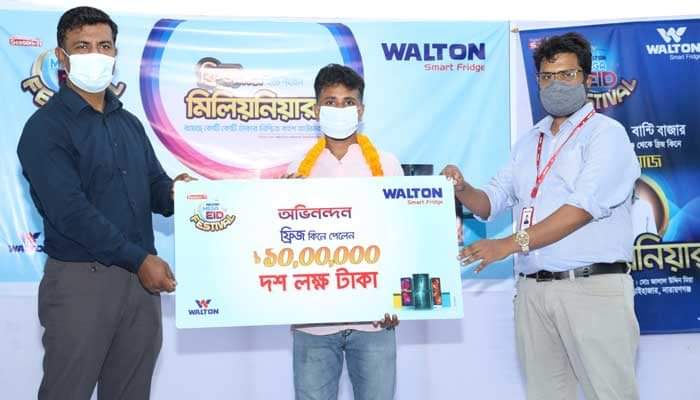 ক্রেতা সেলিম মিয়া জানান, তার বাড়ি আড়াইহাজার উপজেলার গিরদা গ্রামে। স্ত্রী ও এক মেয়ে নিয়ে তিন সদস্যের পরিবার তার। এলাকার মানুষের কাছে ওয়ালটনের প্রশংসা শুনে টাকা জমিয়ে ফ্রিজটি কেনেন। এরপর ডিজিটাল রেজিস্ট্রেশন করলে ১০ লাখ টাকা পাওয়ার মেসেজ যায় তার মোবাইলে। প্রথমে তিনি বিশ্বাসই করতে পারছিলেন না। মাত্র ১৮ হাজার ৫০০ টাকায় ওয়ালটন ফ্র্রিজ কিনে পোশাককর্মী সেলিম হয়ে গেলেন মিলিয়নিয়ার। ওই টাকায় একটি বাড়ি করবেন। কিছু মেয়ের জন্য রাখবেন। বাকি টাকায় একটি গরুর খামার করবেন।