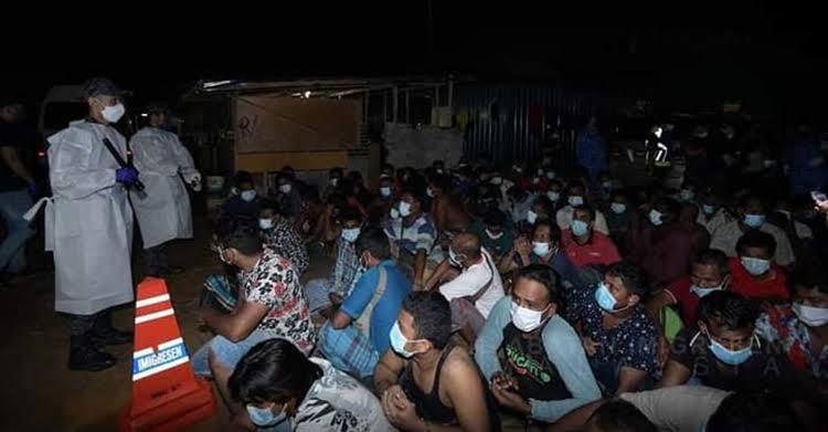 মালয়েশিয়ায় করোনাভাইরাস প্রতিরোধে চলমান কঠোর লকডাউনের মধ্যেই চলছে ধরপাকড় অভিযান। রোববার (২০ জুন) দিবাগত রাতে অভিবাসন বিভাগের অভিযানে ১০২ বাংলাদেশিসহ ৩০৯ জন অবৈধ অভিবাসীকে গ্রেফতার করা হয়েছে। দেশটির রাষ্ট্রীয় সংবাদ সংস্থা বারনামার এক প্রতিবেদনে বলা হয়েছে, রাত সাড়ে ১২টা থেকে রাত ২টা ৩০ মিনিট পর্যন্ত চলা অভিযানে সেলাঙ্গর প্রদেশের মুকিম, ডেংকিল এলাকার একটি কন্সট্রাকশন সাইড থেকে তাদের গ্রেফতার করা হয়। এর মধ্যে ১০২ জন বাংলাদেশি, ১৯৩ জন ইন্দোনেশিয়ার, আট জন মিয়ানমার (রোহিঙ্গা), চার জন ভিয়েতনাম, দুই জন ভারতের নাগরিক রয়েছেন। এদের মধ্যে ২৮০ জন পুরুষ এবং ২৯ জন নারী। নারীদের মধ্যে সবাই ইন্দোনেশিয়ান।