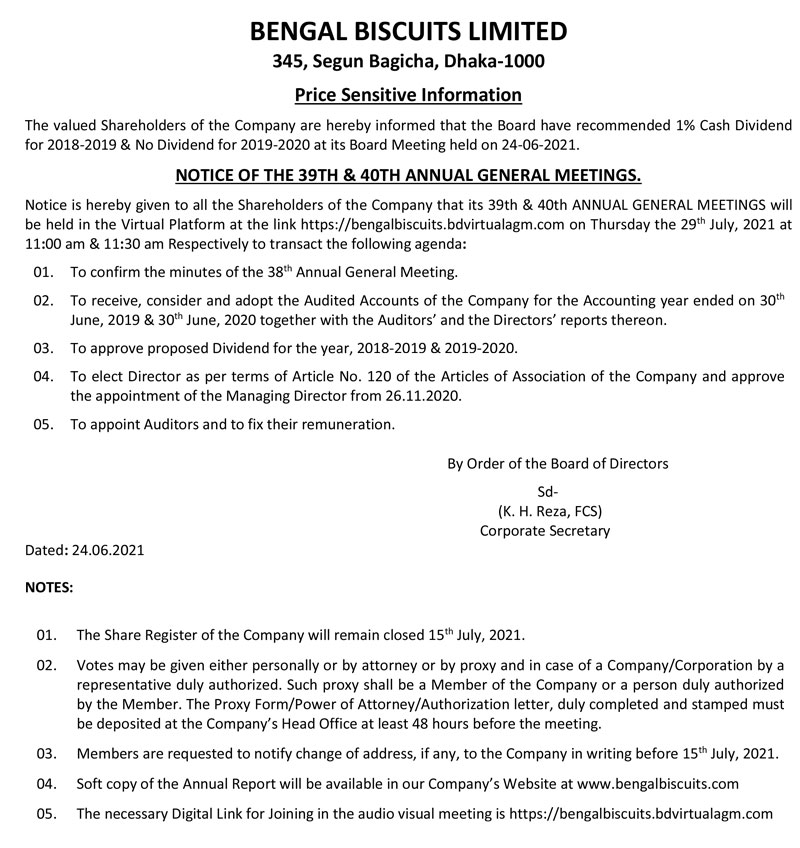 Price Sensitive Information of Bengal Biscuits Limited