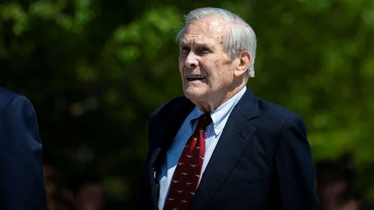মার্কিন যুক্তরাষ্ট্রের সাবেক প্রতিরক্ষা মন্ত্রী রামসফিল্ড ৮৮ বছরে মারা গেছেন। তিনিই একমাত্র ব্যক্তি যিনি দুই দফায় প্রতিরক্ষা মন্ত্রীর দায়িত্ব পালন করেছেন। ১৯৭৫-৭৭ সাল পর্যন্ত প্রথম দফায় এবং পরবর্তীতে ২০০১-০৬ পর্যন্ত দ্বিতীয় দফা পেন্টাগনের দায়িত্বে ছিলেন।খবর বিবিসির।