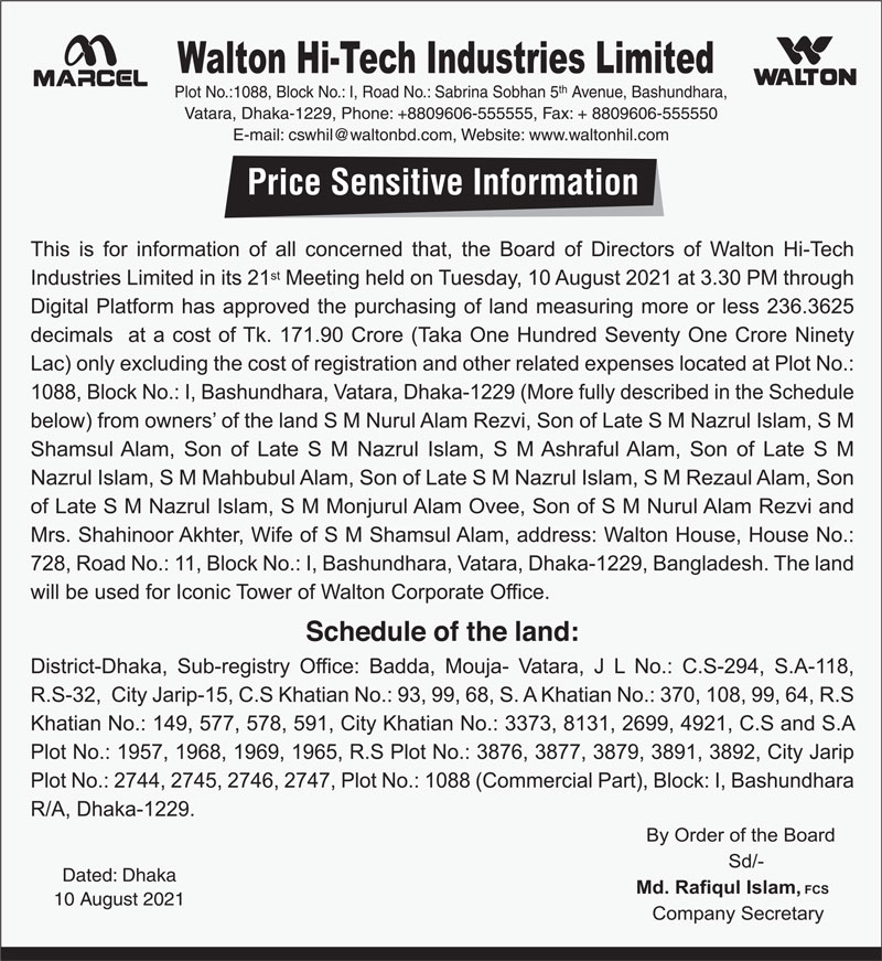Price Sensitive Information of Walton Hi-Tech Industries Ltd.