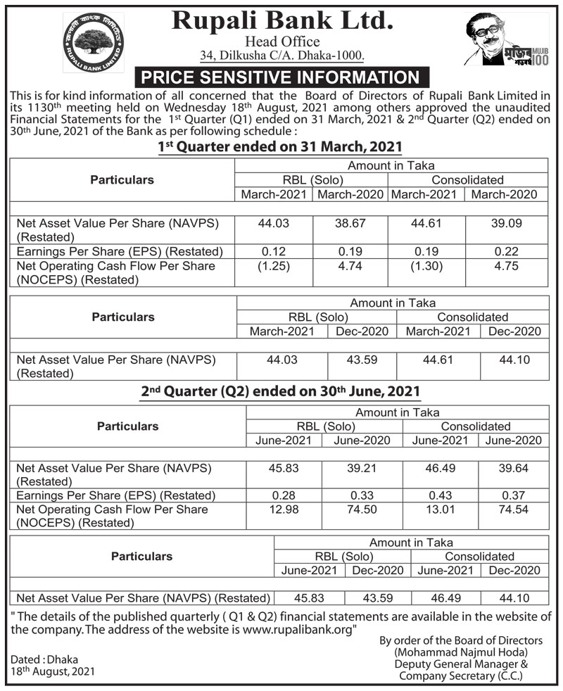 Price Sensitive Information of Rupali Bank Ltd.