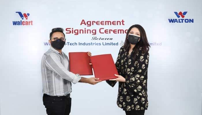এ উপলক্ষ্যে বৃহস্পতিবার (১৯ আগস্ট ২০২১) রাজধানীর বসুন্ধরায় ওয়ালটন করপোরেট অফিসে উভয় প্রতিষ্ঠানের মধ্যে চুক্তি স্বাক্ষরিত হয়েছে। ওয়ালটন হাই-টেক ইন্ডাস্ট্রিজ লিমিটেডের ব্যবস্থাপনা পরিচালক গোলাম মুর্শেদ এবং ওয়ালকার্টের ব্যবস্থাপনা পরিচালক সাবিহা জারিন অরনা নিজ নিজ প্রতিষ্ঠানের পক্ষে চুক্তিতে সই করেন। সে সময় উভয় প্রতিষ্ঠানের ঊধ্বর্তন কর্মকর্তাগণ উপস্থিত ছিলেন।