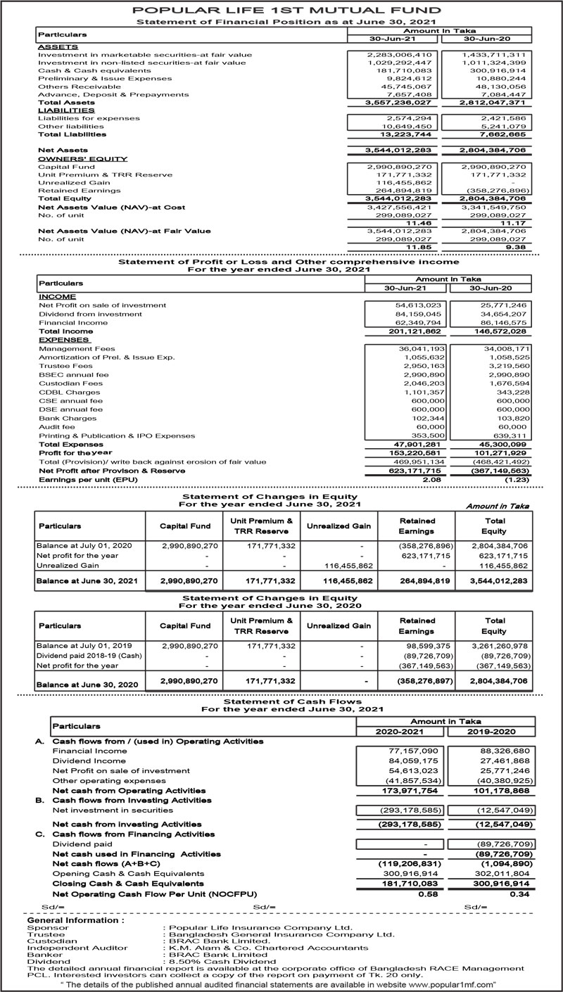 Statment of Finanical Position of Popular Life 1st Mutual Fund