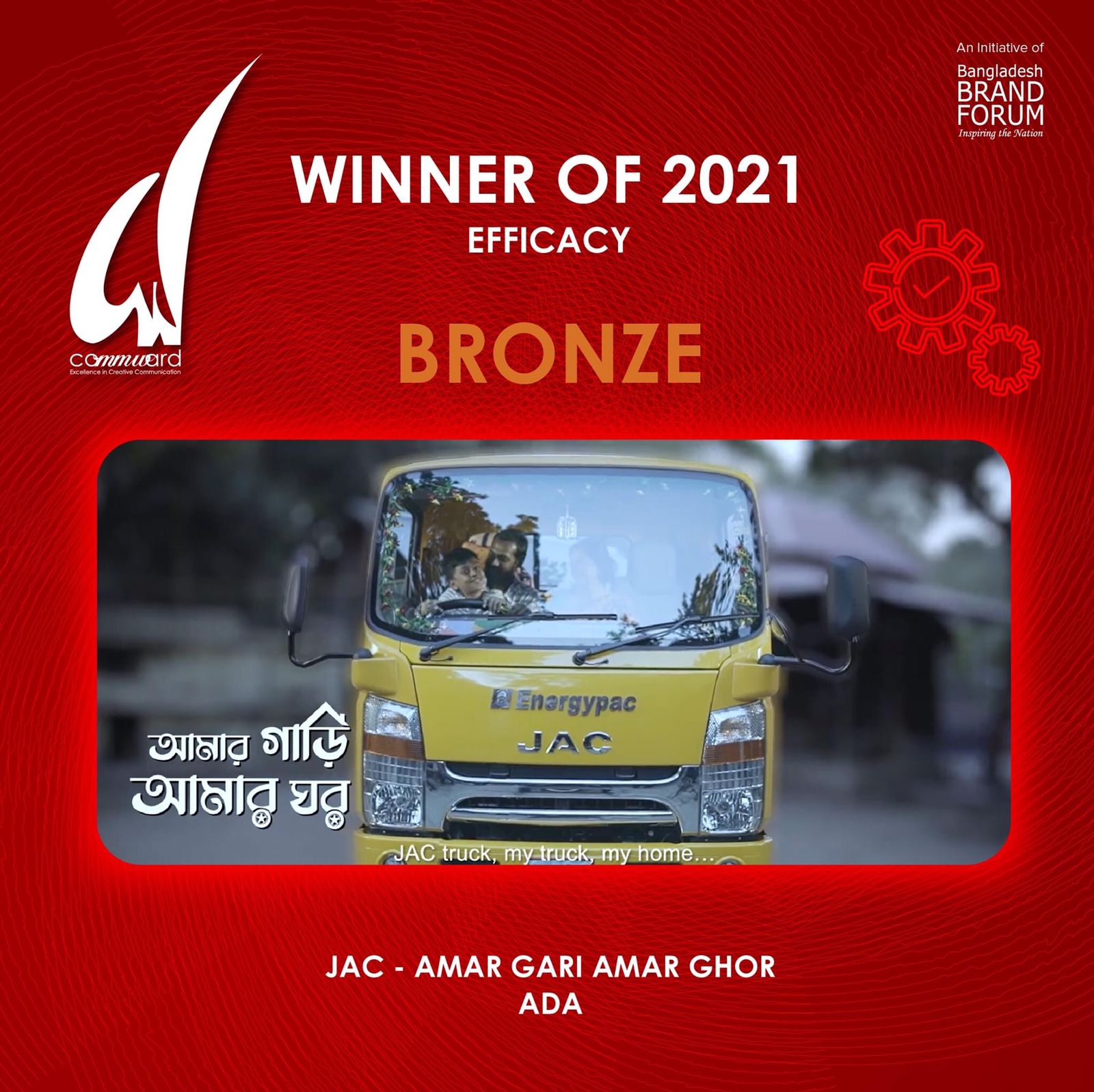এ বছর মোট ২২৭টি প্রতিষ্ঠানকে ২৬টি ক্যাটাগরিতে ব্রোঞ্জ সিলভার, গোল্ড ও গ্রান্ড প্রি বিভাগে কমওয়ার্ড বিজ্ঞাপন পুরস্কার প্রদান করা হয়। জেএসি গাড়ির জন্য তৈরি জেএসি ‘আমার গাড়ি, আমার ঘর’ ক্যাম্পেইনটি ‘বেস্ট এফিক্যাসি’ ক্যাটাগরিতে ব্রোঞ্জ পুরস্কার জিতে নেয়।