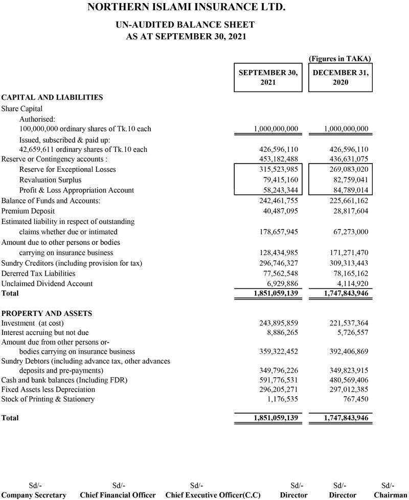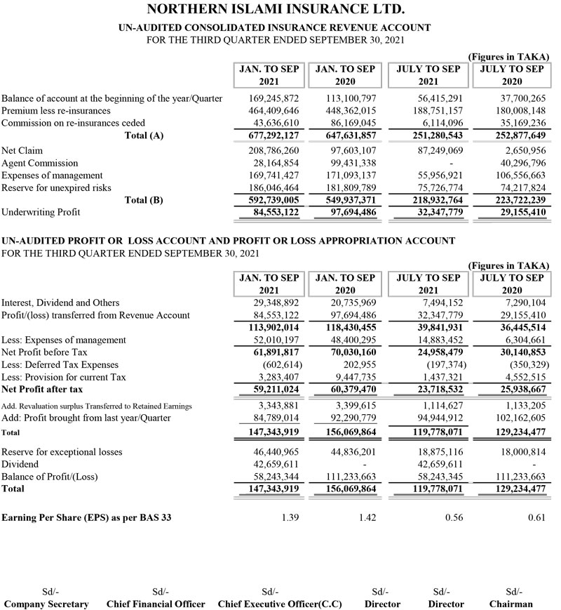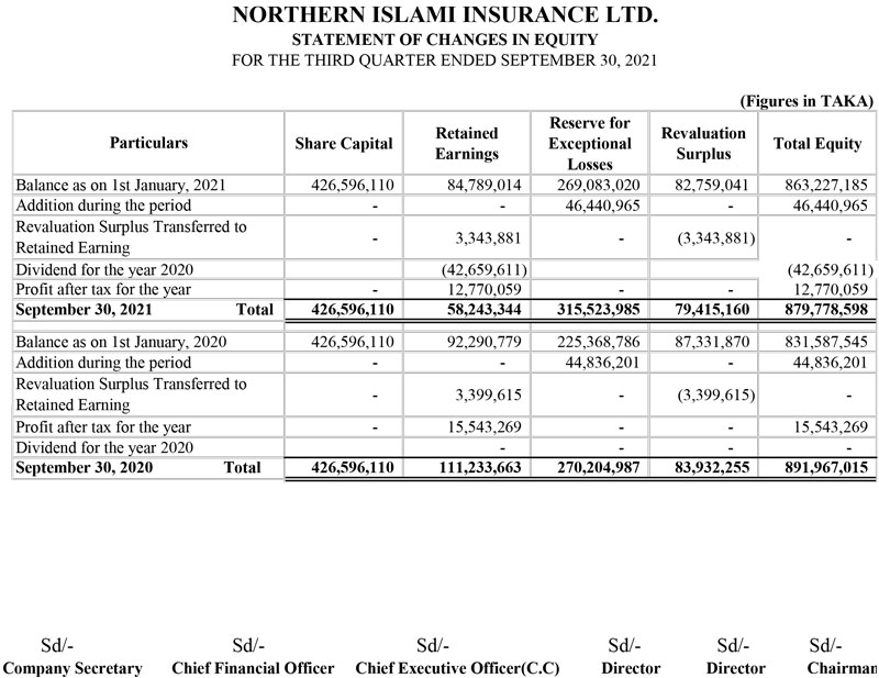 Q3 Financial Statements of Northern Islami Insurance Ltd.