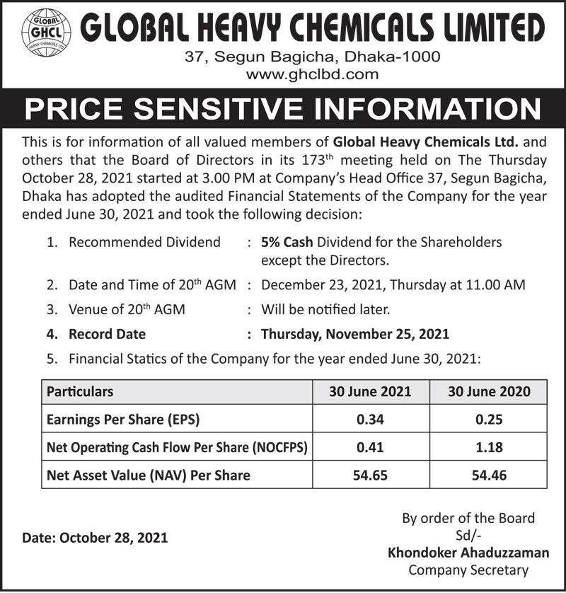 Price Sensitive Information of Global Heavy Chemcals Limited