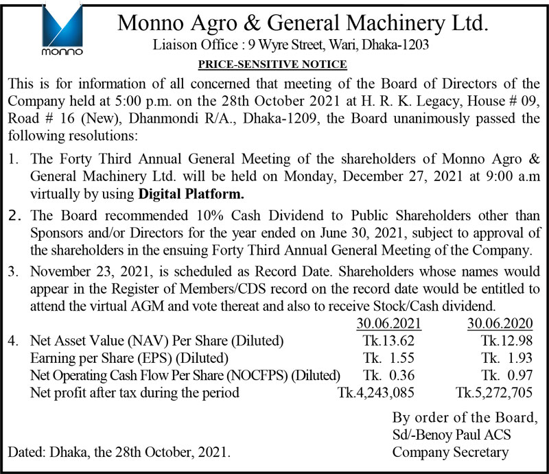 Price Sensitive Information of Monno Agro & General Machinery Ltd.