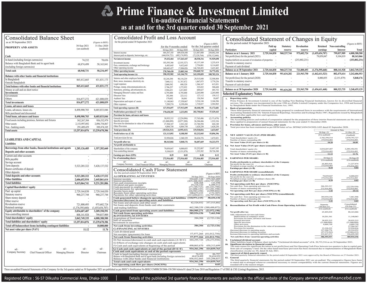 Q3 Financial Statements of Prime Finance & Investment Ltd.