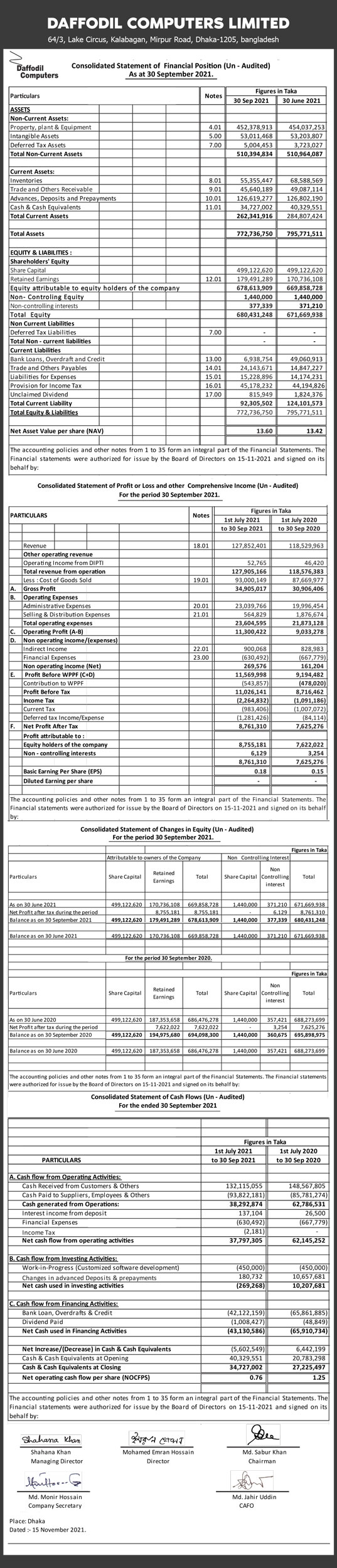 Consolidated Statements of Financial Position (Un-audited) of Daffodil Computers Limited
