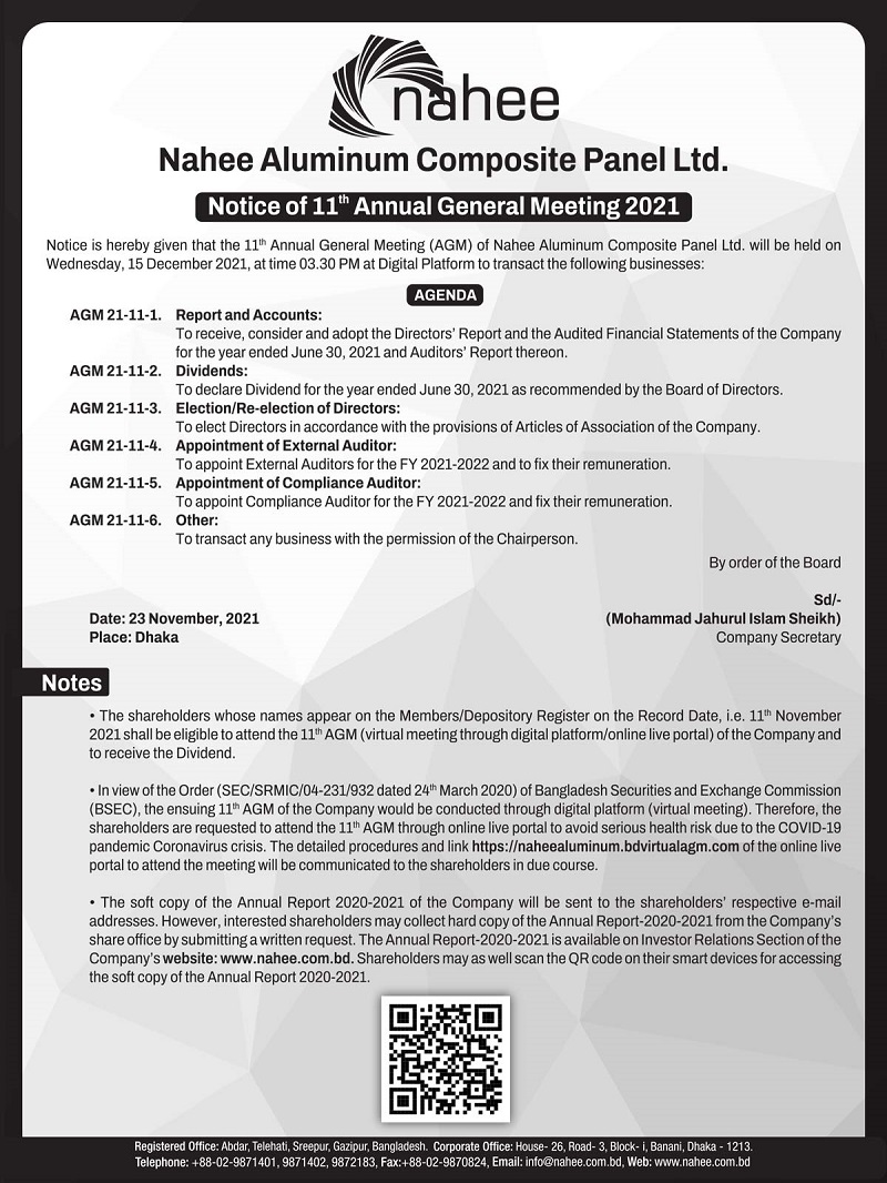 Notice of 11th AGM of Nahee Aluminum Composite Panel Ltd.