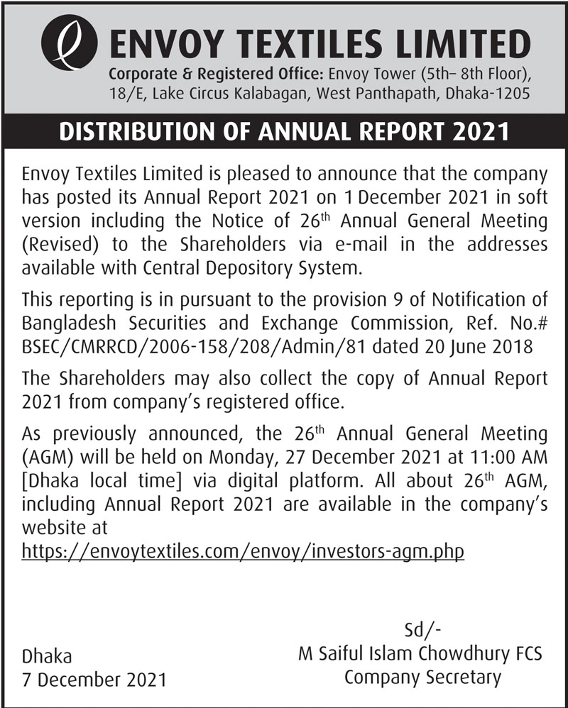 Distribution of Annual Report 2021 of Envoy Textile Ltd.