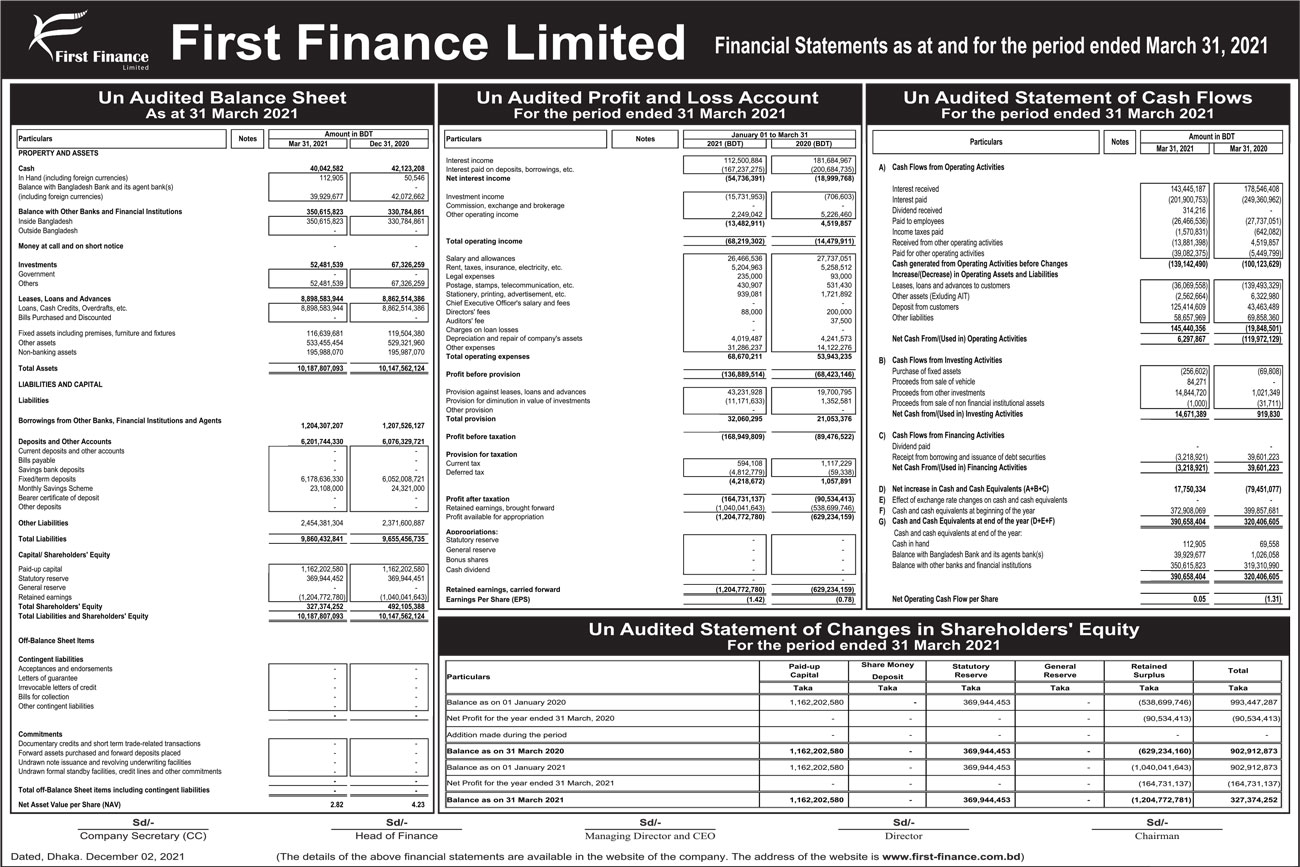 Financial Statements as at and for the period ended March 31, 2021 of First Finance Limited
