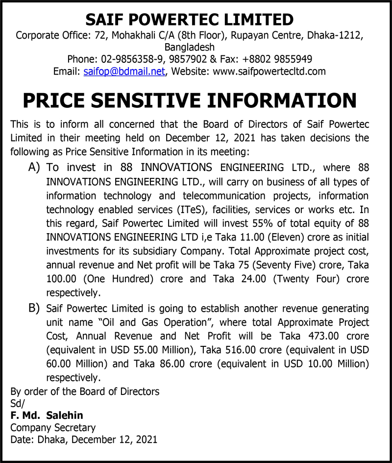 Price Sensitive Information of SAIF Powertec Limited