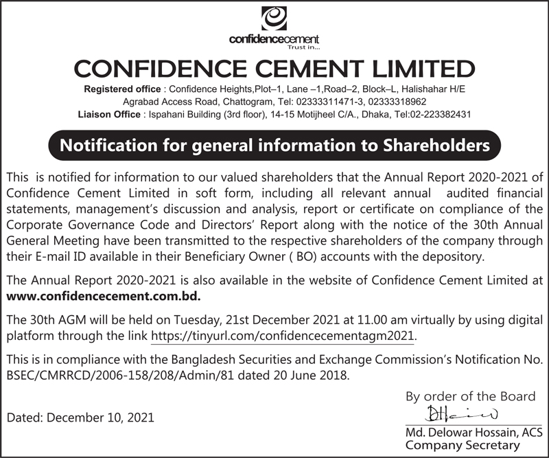 Notification for General Information to Shareholders of Confidence Cement Ltd.