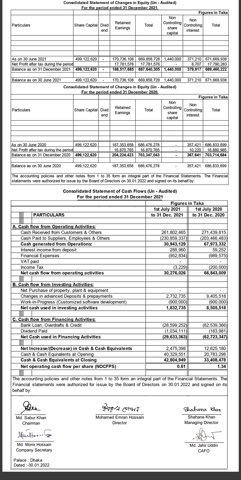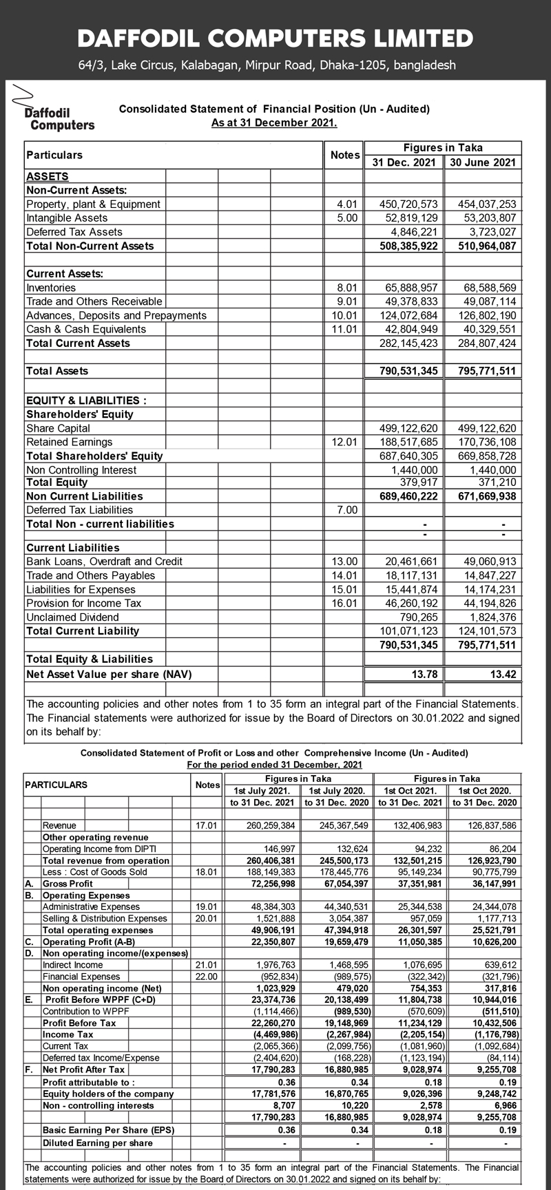 Consolidated Statements of Financial Position (Un-audited) of Daffodil Computers Ltd.